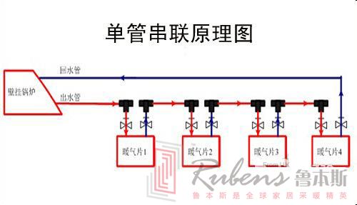 一、串联方式。从优点上来说,串联比较节省材料,只需要一根管子,安装成本较低,节省空间,但是缺陷也是非常明显的,由于串联的方式,使得控制每一组暖气片的温度出现问题,不能很好的控制,房间内温度不平均,出现温度差,每个房间需要特别的照顾。如果希望节省资金和空间,管道比较短的客户可以考虑串联的方式。另外还有一点,就是在更换、维修上面,串联的可能会比较麻烦,如果其中的一组暖气片出现问题,就要停止供暖,维修完之后才能正常工作,这也是不利的一点,消费者在考虑串联的时候要谨慎。