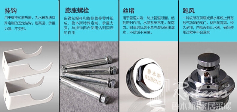 暖气片固定在墙面上的好帮手,在如今越来越追求美观的情况下,消费者更习惯将暖气片挂在墙面上,这就要求胀钉和挂钩具有很强的抗压、抗拉性能,保证暖气片不会移动,安全的工作。