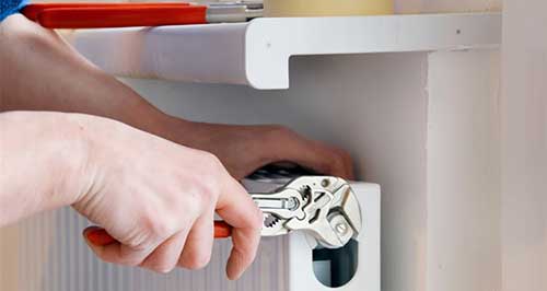 5、平稳放置暖气片,连接进水阀门和出水阀门用水平尺测量暖气片,检查管路安装是否正确,使用管钳拧紧加固连接件。