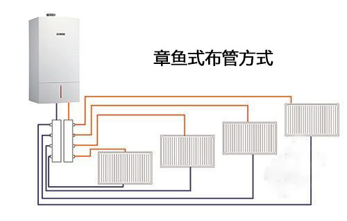 暗装暖气片采用的是章鱼式连接方式。缺点是管道坏了不方便维修。管道埋在地板下面,外观上看起来干净、整洁。