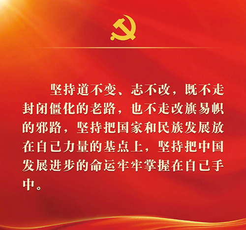 七、坚持道不变、志不改,既不走封闭僵化的老路,也不走改旗易帜的邪路,坚持把国家和民族发展放在自己力量的基点上,坚持把中国发展进步的命运牢牢掌握在自己手中。