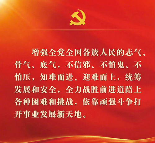 八、增强全党全国各族人民的志气、骨气、底气,不信邪、不怕鬼、不怕压,知难而进、迎难而上,统筹发展和安全,全力战胜前进道路上的各种困难和挑战,依靠顽强斗争打开事业发展新天地。