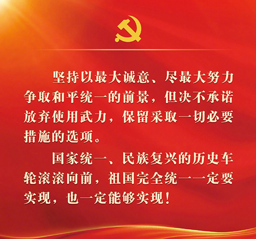国家统一、民族复兴的历史车轮滚滚向前,祖国完全统一一定要实现,也一定能够实现!