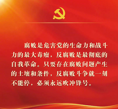 十、腐败是危害党的生命力和战斗力的最大毒瘤,反腐败是最彻底的自我革命。只要存在腐败问题产生的土壤和条件,反腐败斗争就一刻不能停,必须永远吹冲锋号。