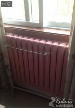 窗台下带毛巾杆的粉红色暖气片安装效果图